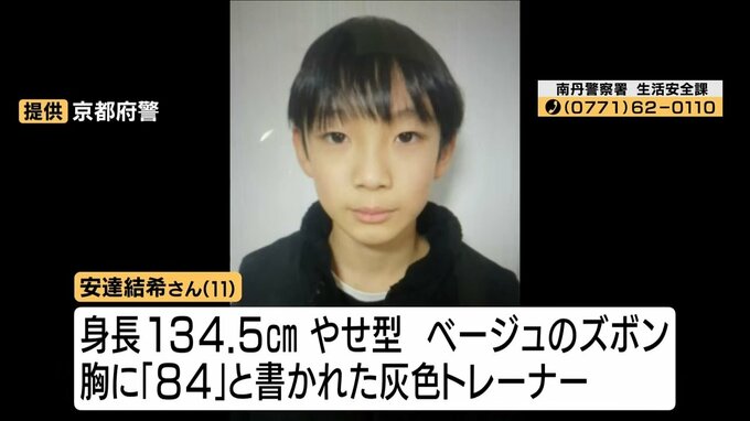 安達さんは身長134.5センチのやせ型で、ベージュのズボンや胸に「84」と書かれた灰色のトレーナーを着ていたということで、警察は情報の提供を求めています。