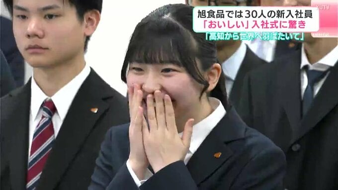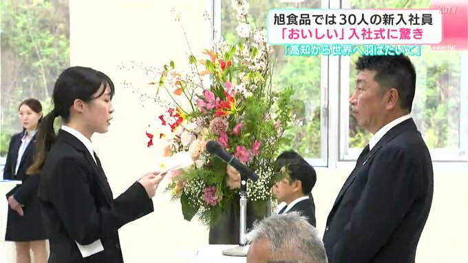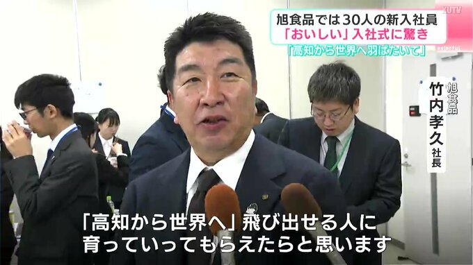 高知県南国市の食品メーカー「旭食品」でも新入社員たちの真剣なまなざしが。今年は高卒、大卒、大学院卒あわせて30人の新入社員を迎え入社式が行われました。