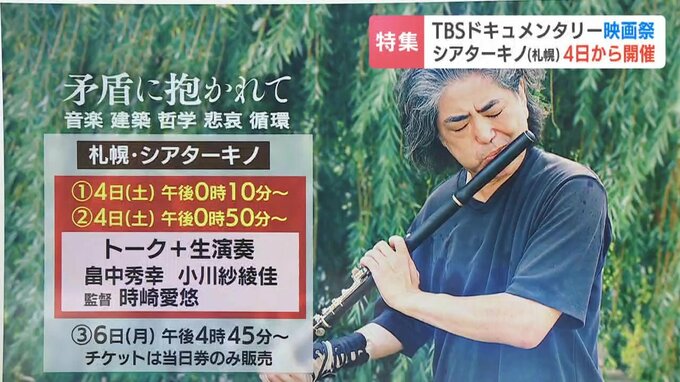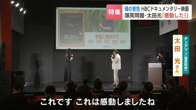 爆笑問題 太田光「感動した!」HBCドキュメンタリー映画『矛盾に抱かれて』時崎愛悠監督「まひが進行するなかで、懸命にできることを探し続けている」 北海道放送 2026年4月1日(水) 19:10 国内 「音楽活動・哲学・建築を前に推し進めて世界観を作っていく姿に感動」 映画祭チェアマン(爆笑問題)太田光さん 「これです!これは感動しましたね。マイナスではなくて芸術家としてはこれはプラスだととらえて、音楽活動・哲学・建築を前に推し進めて世界観を作っていく姿に感動した」