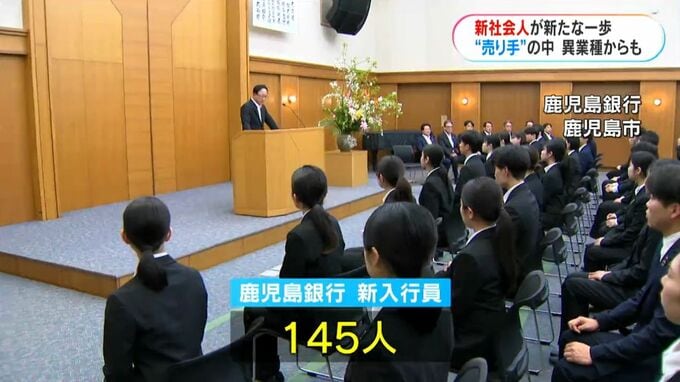 一方、鹿児島銀行には145人が入行し、きょう1日付けで就任した碇山浩美新頭取がエールを送りました。