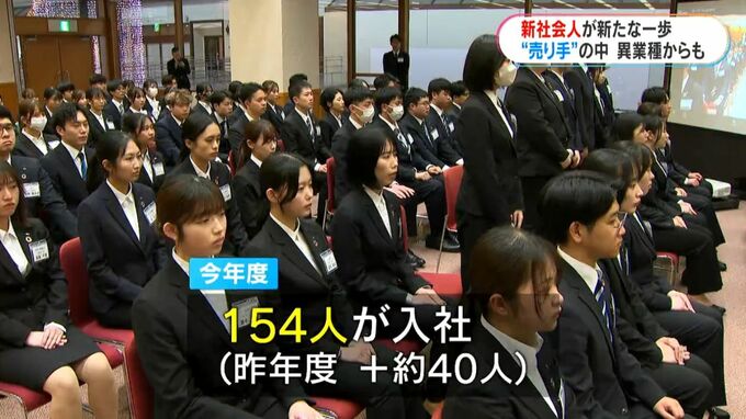 こちらは医薬品の開発などを行う新日本科学グループの入社式です。去年よりおよそ40人多い154人が入社しました。