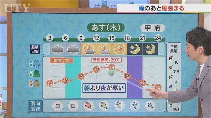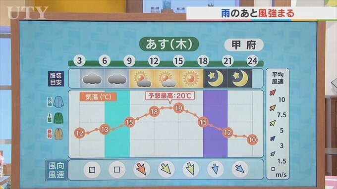 まず、予想最高気温は20℃ですからきょうと比べて2℃ほど高くなる予想です。
