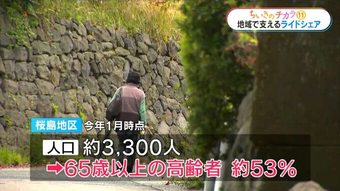 桜島地区の住民はおよそ3300人。そのうち65歳以上の高齢者はおよそ53パーセントで、鹿児島市で最も高齢化が進んでいる地域です。