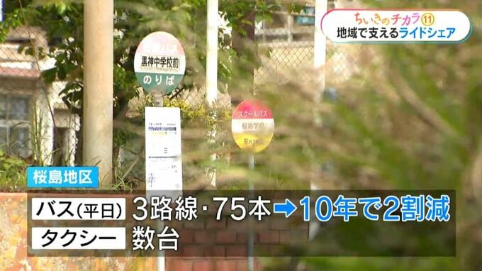 (記者)「桜島の東側・黒神町に来ている。こちらの地域ではバスがおよそ1時間から2時間に1本ほどしか出ておらず、高齢者にとっては移動手段の確保が課題となっている」