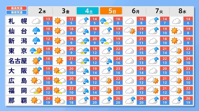 一方、4日(土)から5日(日)にかけて、前線を伴った低気圧が日本海を発達しながら進む見込みで、暖かく湿った空気が流れ込むため、西日本や東日本太平洋側を中心に警報級の大雨となる恐れがあるということです。