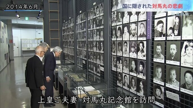 2014年、対馬丸記念館に上皇ご夫妻が訪れ、2025年には天皇ご一家が訪れ、命を落とした子どもたちに、祈りを捧げられている。