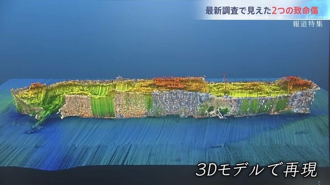 そして今回、現場で得られたデータにより、現在の対馬丸の姿を3Dモデルとして再現することができた。