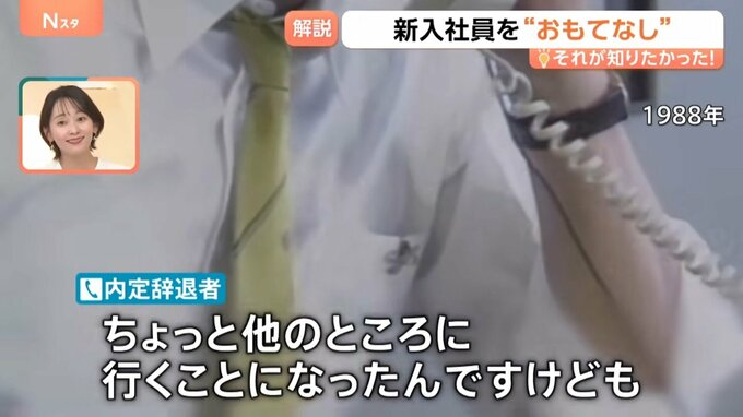そんな、囲い込みをしているにも関わらず、売り手市場を背景に、内定辞退者が続出していました。当時の映像には人事担当者と内定辞退者との少し怖いやり取りがありました。
