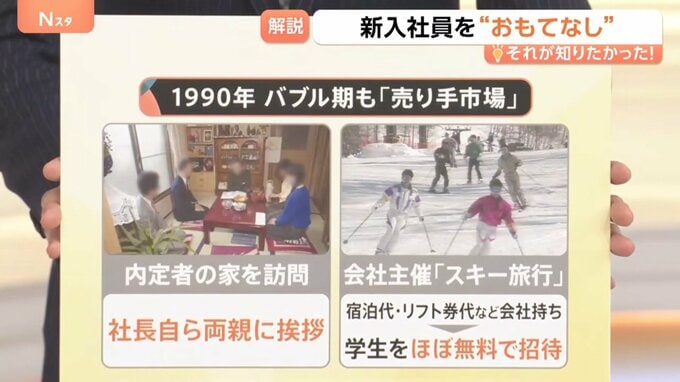 「超売り手市場」は40年ほど前のバブル期にもありました。当時の様子をみると、会社の社長が内定者の両親に菓子折りを持って挨拶に行ったり、会社主催の「スキー旅行」にほぼ無料(宿泊代・リフト券代など会社持ち)で学生を招待するなど、囲い込みのような事をしていました。
