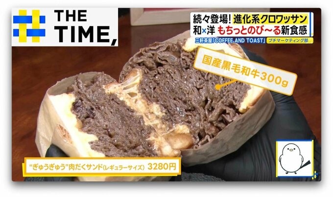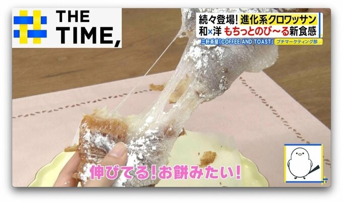 「クロワッサンを割ってみると…すごい、伸びている!お餅みたい」