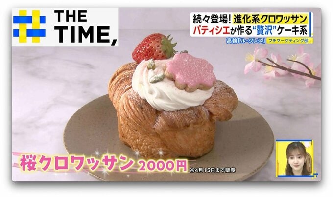 他にも、ガナッシュクリームやチョコレートクランチなどがトッピングされた「クロワッサンショコラ」(1500円)や、桜のクッキーやイチゴがトッピングされた春限定の「桜クロワッサン」(2000円※4月15日まで販売)など全6種類を販売。