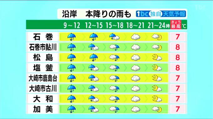 ■石巻:7℃ ■石巻市鮎川:8℃ ■松島:8℃