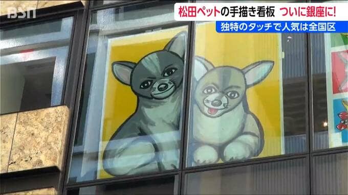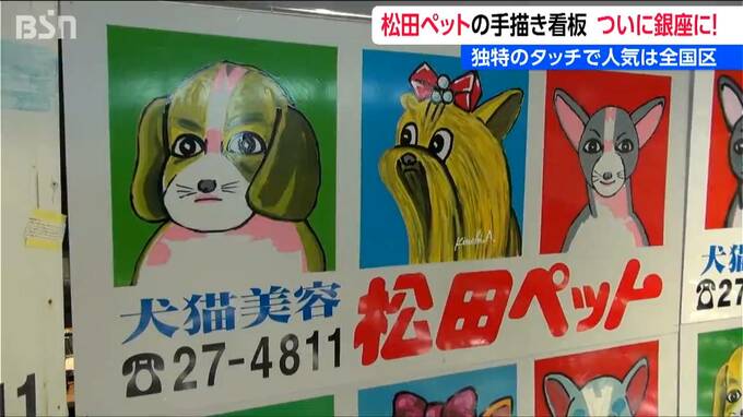 独特のタッチが印象的な長岡市の老舗ペットショップ『松田ペット』の手描き看板。この看板は長岡市を中心に数百枚が掲示されています。