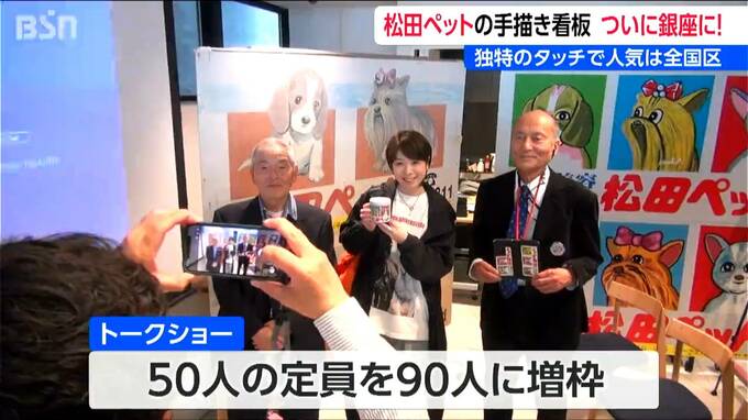松田ペットの松田保夫社長と看板絵師の青柳謹一さんも参加したトークショーには、申し込みが殺到!