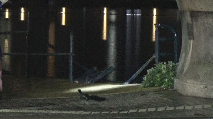 事故があったのは、広島市中区舟入町の交差点です。警察と消防によりますと、1日午後8時45分ごろ、「車と車が衝突して川に転落した」と119番通報がありました。乗用車と軽乗用車が出会い頭に衝突し、はずみで軽乗用車が川に転落。およそ40分後、軽乗用車を運転していた北條ヱミさん(59)が救出されましたが、搬送先の病院で死亡が確認されました。
