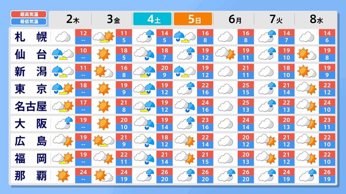 また気象庁は、北日本では5日ごろにかけて低気圧の影響で荒れた天気となり、低気圧の発達の程度等によっては、大荒れとなる恐れがあるとしています。
