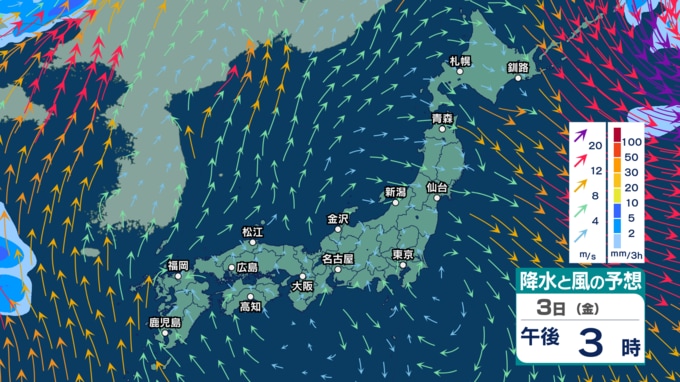 きょうは落雷や突風などに注意 4日(土)~5日(日)は雷伴う激しい雨か 強風・高波も加わり全国的に荒れた天気に?【2日(木)~7日(火)午後3時の雨シミュレーション・2日正午更新】 新潟放送 2026年4月2日(木) 12:00 3日(金)の雨・雪(降水)のシミュレーション