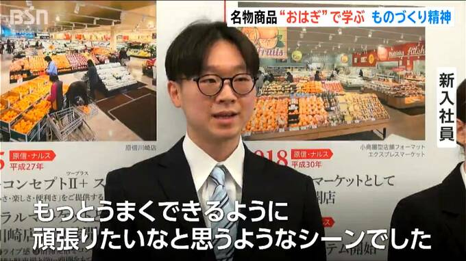 新潟県などでスーパーマーケットを展開する企業の新入社員が「名物商品」を通して、ものづくりの精神を学びました。