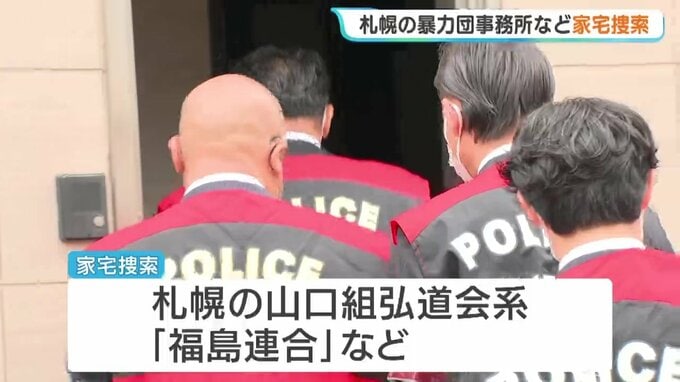 家宅捜索は、午前10時半ごろから、札幌にある指定暴力団山口組弘道会系の「福島連合」や東京都内の住吉会と極東会の本部事務所で行われています。