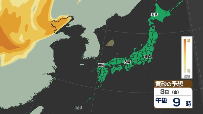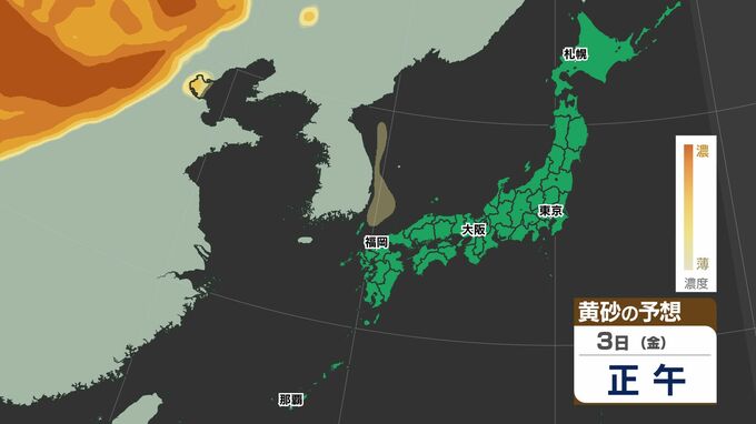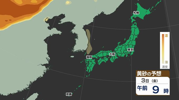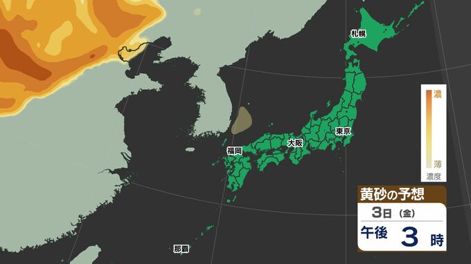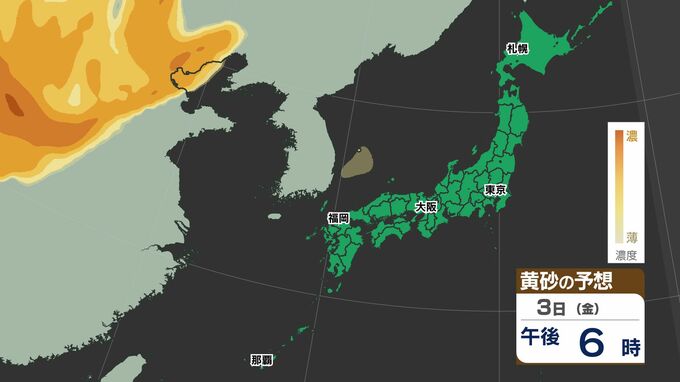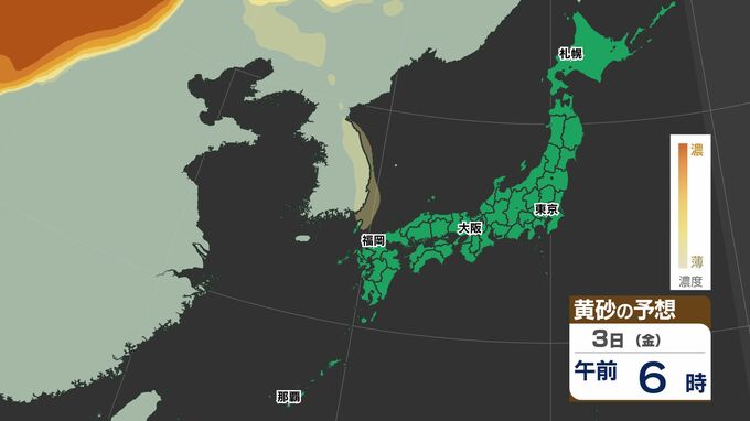 【黄砂情報】5日(日)日本に黄砂飛来か? 【黄砂シミュレーション3日(金)~5日(土)/ 全国各都市の週間予報】気象庁 黄砂情報 南日本放送 2026年4月2日(木) 12:17 国内 天気 黄砂のシミュレーション3日(金)~5日(日) 中国大陸に控える「黄砂」が、5日(日)には九州~中国・四国地方に流れ込んできそうです。画像でご確認ください。