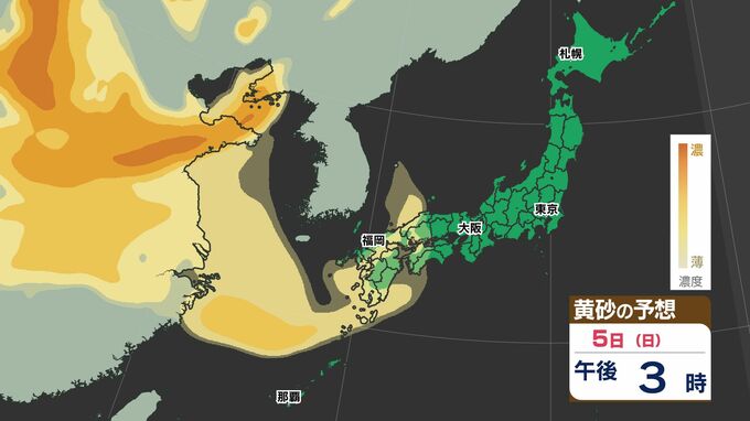 【黄砂情報】5日(日)日本に黄砂飛来か? 【黄砂シミュレーション3日(金)~5日(土)/ 全国各都市の週間予報】気象庁 黄砂情報