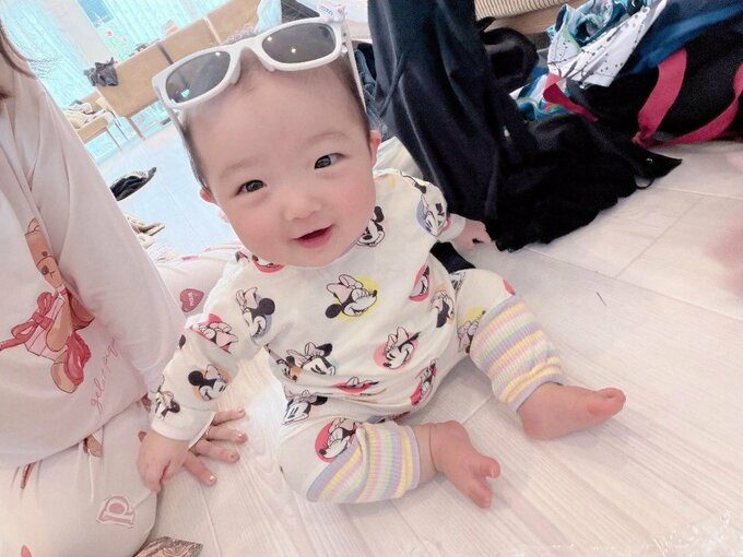 ミッキーマウス柄のロンパースにカラフルなボーダーの袖という愛らしいコーディネートで、頭に白いサングラスをちょこんと乗せた夢空ちゃんのファッションも注目を集めています。