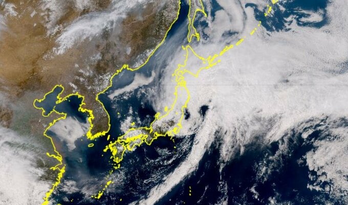 気象庁によりますと、上空約5500メートル付近の気圧の谷(トラフ)に対応した低気圧が、前線を伴い本州の南海上を北東に進んでいます。