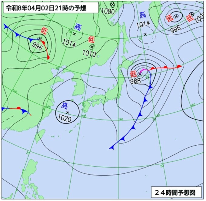 本州の南海上にある低気圧が前線を伴いながら発達し、3日夜にかけて千島近海へ向かって北東に進む見込みです。