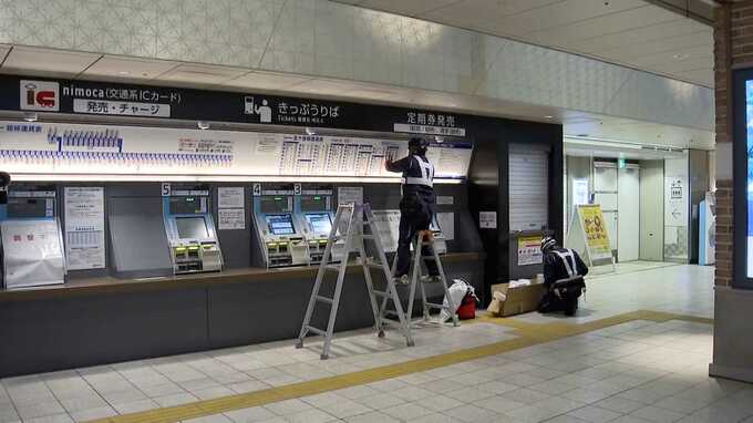 最終電車が出発した後の西鉄福岡駅では、運賃表の金額を張り替える作業が行われました。