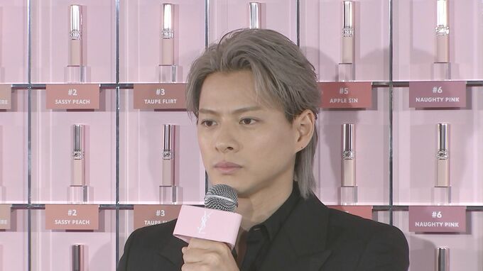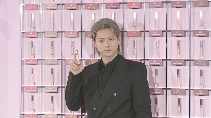 〝僕にもすごく馴染んでいてお気に入りのアイテムだなと思っています。パッケージもすごく可愛いですし、(リップのコンセプトである)「ふわじゅわ」というリップの名の通り、付けたときに自分の唇がふっくらするような感覚もありますし、じゅわっとするような潤いもすごく感じられたので、皆さんにもこの体験をしていただきたい〟と製品をPRしました。
