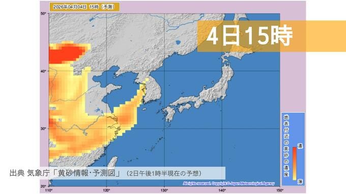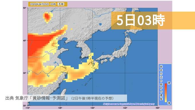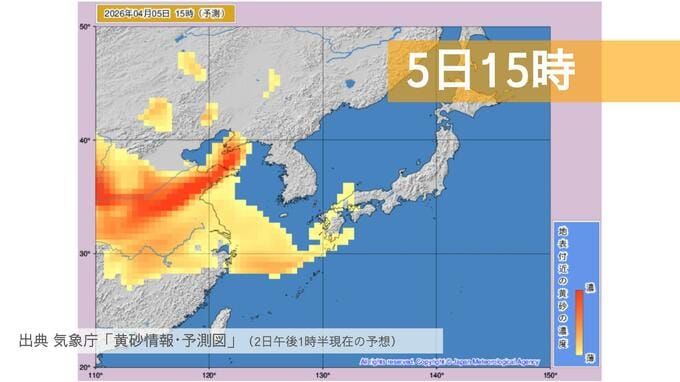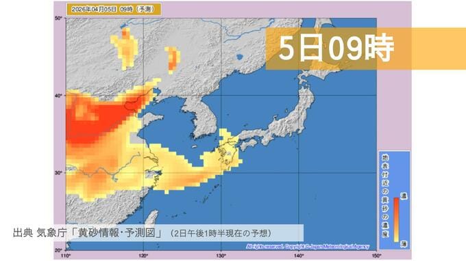 気象庁の2日午後1時頃の予測によりますと、今月5日(日)は大陸からの黄砂が九州地方を中心に広く飛来する見込みです。