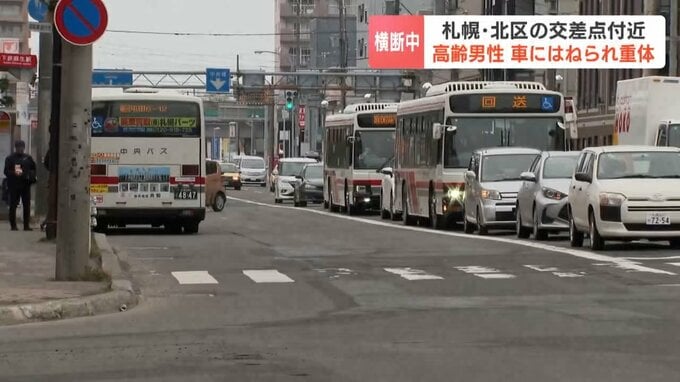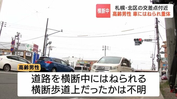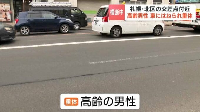 2日正午すぎ、札幌市北区で、道路を横断していた高齢の男性が車にはねられ、意識不明の重体です。
