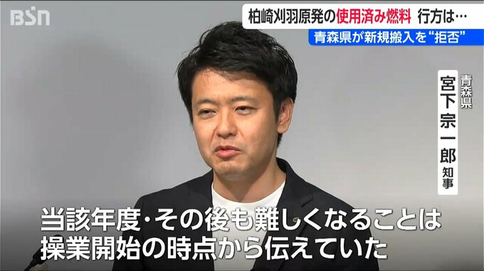 しかし同じ日、青森県の宮下知事が現時点では新規の搬入を認めない考えを示したのです。保管した核燃料の搬出先となる再処理工場の審査が遅れていることを最大の理由に挙げています。
