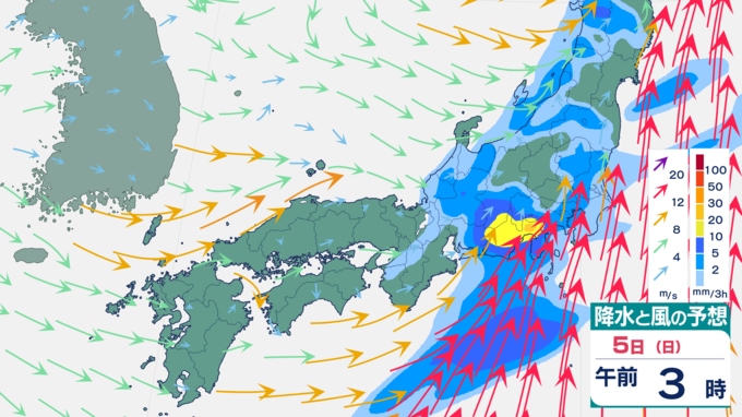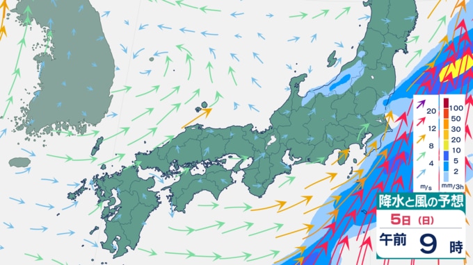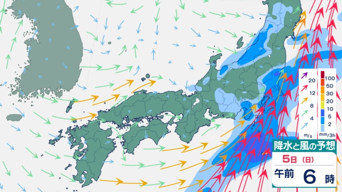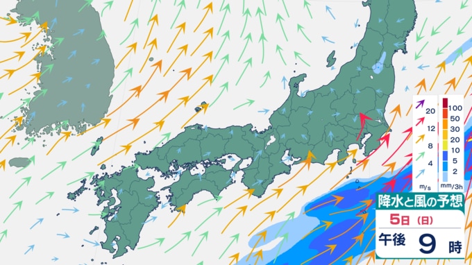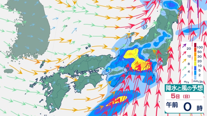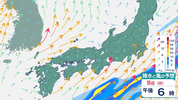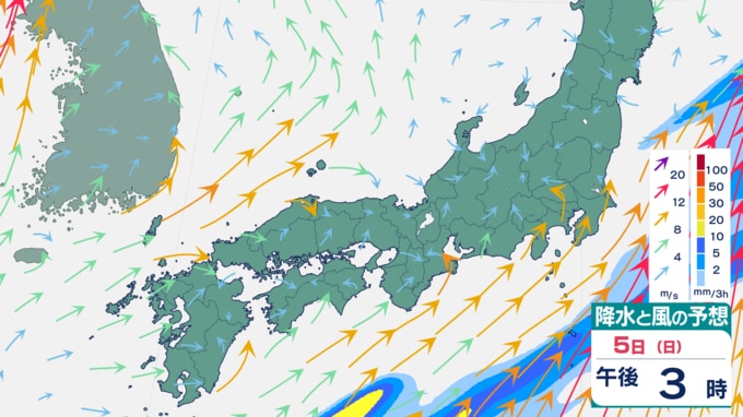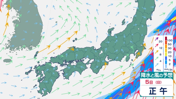 【大雨情報】週末は再び大雨予想⋯九州・四国・東海などで「警報級の大雨」のおそれ 5日は関東でも雨予想(4日から12日までの雨風シミュレーション) テレビ高知 2026年4月2日(木) 16:31 国内 天気 5日の雨風予想 雨は、5日午後には止むところが多いでしょう。 ▼4日の雨風予想⋯西日本で大雨予想 ▼6日の雨風予想 ▼7日の雨風予想 ▼8日以降の雨風予想⋯来週末は再び雨か