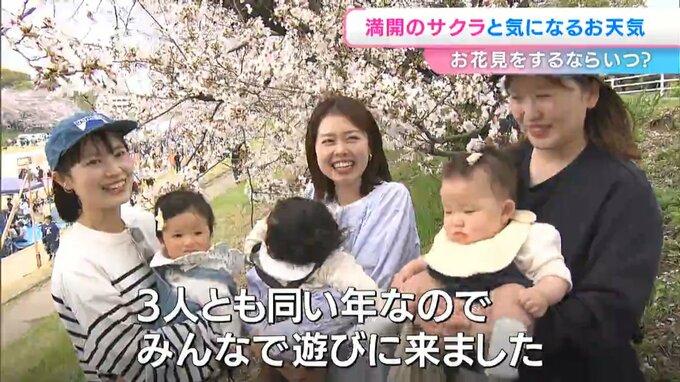 一方。こちらの親子連れは、きのうの雨を受けお花見を一日延期したといいます。
