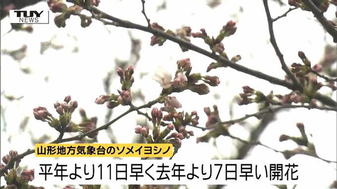 山形地方気象台はきょう、桜の開花を観測したと発表しました。平年より11日早く、去年より7日早い開花です。