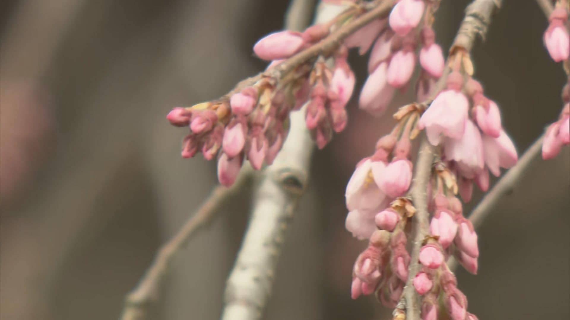 今年も息吹いた薄紅色の小さな花。日本三大桜のひとつ、福島県三春町の滝桜が開花しました。