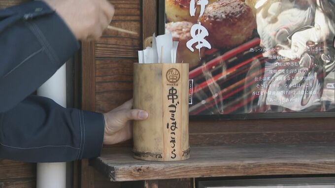 その食べた後の串を入れるためのゴミ箱は、城下町の約50箇所に設置しています。