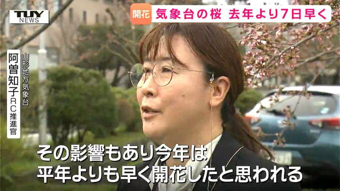 山形地方気象台 阿曽知子 RC推進官「3月の平均気温が平年よりも高く経過していて、3月の統計6位を更新しました。その影響もあり今年は平年よりも早く開花したと思われます」
