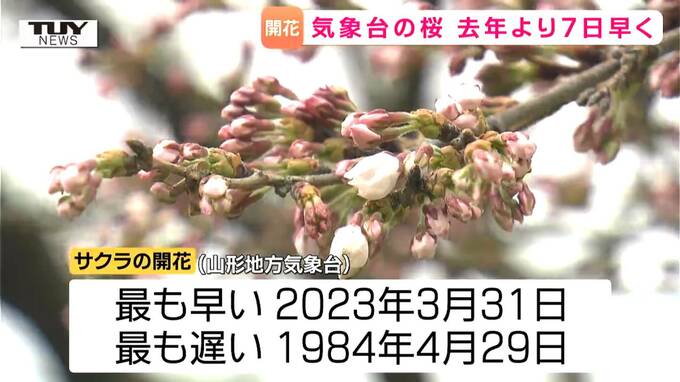 山形でもいよいよ桜の開花です。山形地方気象台できょう桜の開花が観測されました。平年より11日早く、去年より7日早い開花で、歴代2番目の早さです。