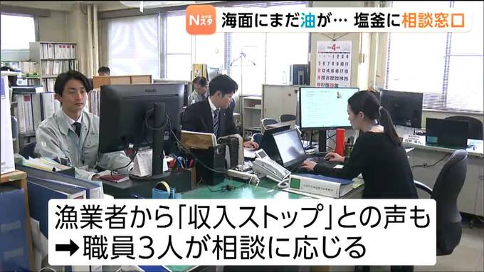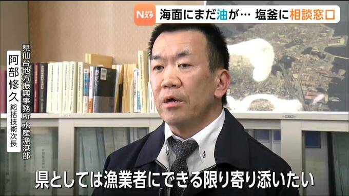 こうした中、塩釜市内にある宮城県の事務所には、1日から相談窓口が設けられています。重油被害を受けた漁業者からは「収入がストップした」という声も出ていて、職員3人が資金繰りなどの相談に応じることにしています。
