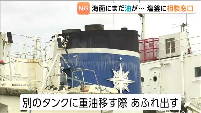 宮城県塩釜港で、宮城海上保安部の巡視船から重油が漏れ出した問題は、一週間が過ぎた今も重油の一部が海面に残っています。塩釜市内には漁業者の相談窓口が開設されていて宮城県の職員が、資金繰りなどについて相談に応じています。