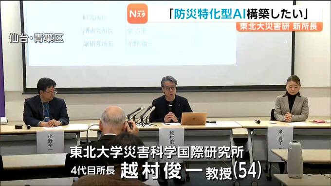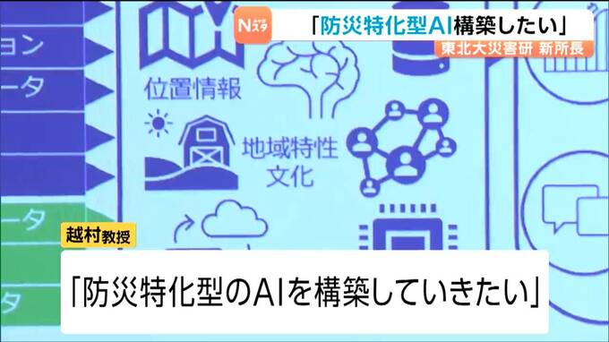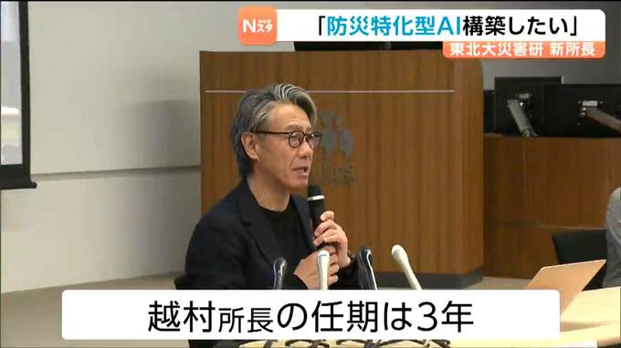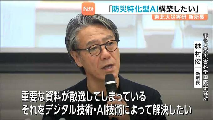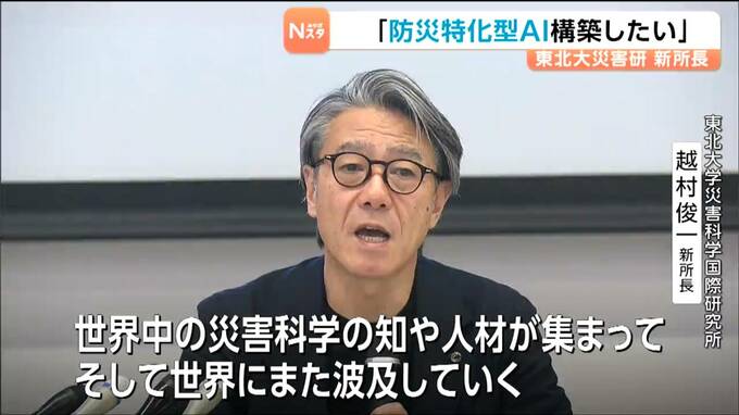 防災に関する研究を行う東北大学災害科学国際研究所の新しい所長に越村俊一教授が就任し、「防災特化型のAIを構築していきたい」と抱負を語りました。
