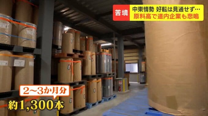 いま、倉庫にあるプラスチックロールの在庫は1300本ほど。2~3か月で使い切ってしまう量ですが、今後の仕入れ状況についてはいまだ不透明だといいます。