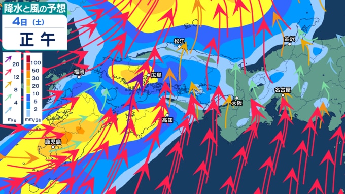 大雨や風の予想シミュレーションをみてみると、今週末4日(土)~5日(日)午前中にかけては、活発な雨雲が西日本→東日本にかかるとみられます。また、北日本にも雨雲のかかる時間帯があることがみてとれます。