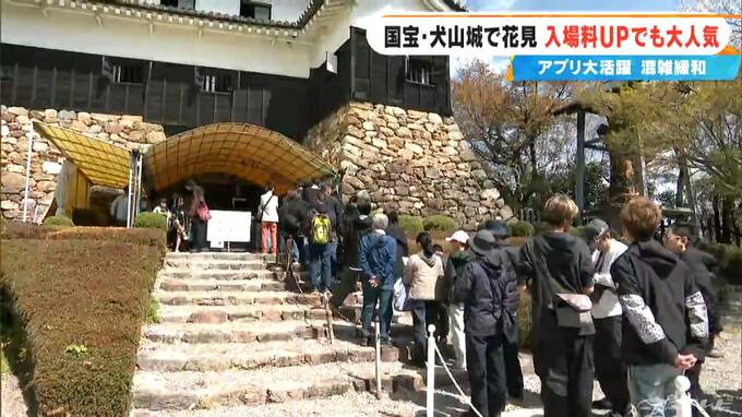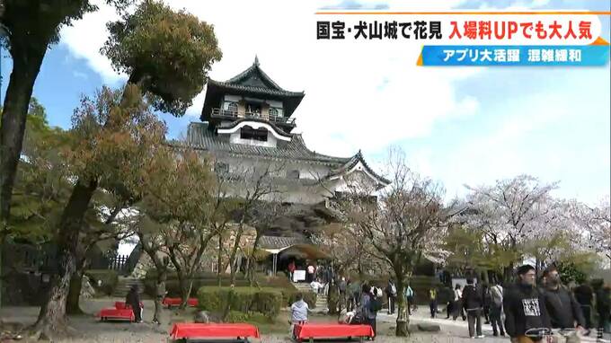 「愛知県犬山市です。国宝・犬山城と桜、まさに日本が誇る春の景色です。犬山城は、入場するために長蛇の列ができています」