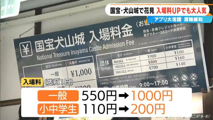 犬山城では、防火対策など文化財の管理や保護に向けた費用をまかなおうと3月から入場料を一般550円を1000円に、小中学生110円を200円に値上げしました。