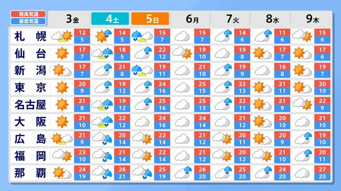 また、低気圧や前線付近では強い風や非常に強い風が吹いて、しける所がある見込みで、強風や高波に注意してください。北日本から東日本の雪の多い地域では、雨や気温上昇の影響で雪解けが進むとしていて、4日にかけてなだれや融雪に注意が必要です。