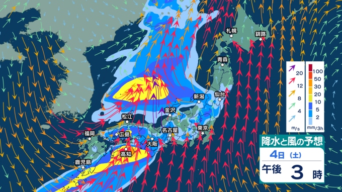 4日(土)は全国的に“春の嵐”か 低気圧が発達し非常に激しい雨? 非常に強い風や高波に注意・警戒【3日(金)~7日(火)の雨シミュレーション・2日午後9時更新】 新潟放送 2026年4月2日(木) 21:00 4日(土)の雨・雪(降水)のシミュレーション