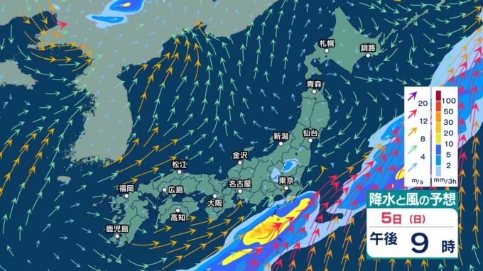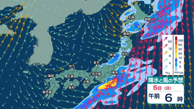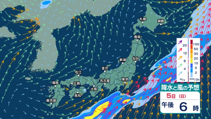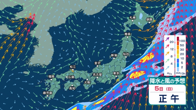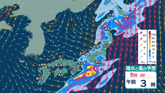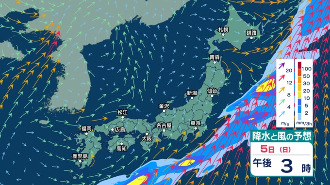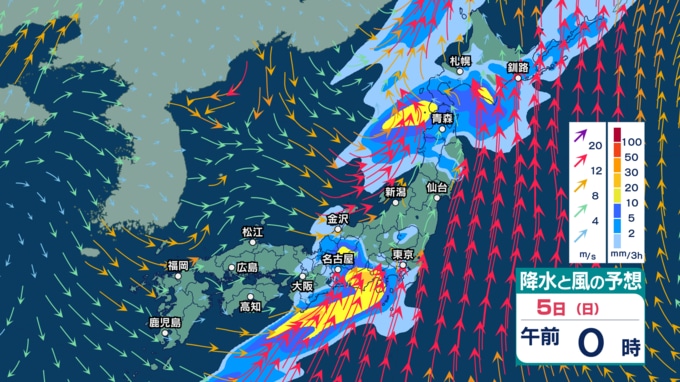 4日(土)は全国的に“春の嵐”か 低気圧が発達し非常に激しい雨? 非常に強い風や高波に注意・警戒【3日(金)~7日(火)の雨シミュレーション・2日午後9時更新】 新潟放送 2026年4月2日(木) 21:00 5日(日)の雨・雪(降水)のシミュレーション